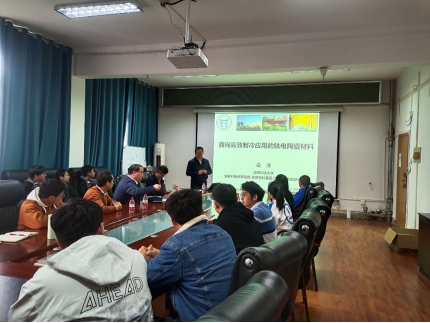 白洋教授的报告紧紧围绕电卡制冷材料的前沿问题和研究热点,内容详实、论证严谨、富有启发性,为功能陶瓷方向的师生展示了良好的研究范式,对促进我校功能材料领域的研究起到了引领作用。
