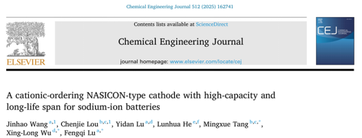 近日,太阳集团城网站2017、有色金属及材料加工新技术教育部重点实验室卢锋奇博士在聚阴离子结构钠离子电池正极材料取得新进展,相关研究成果以《A cationic-ordering NASICON-type cathode with high-capacity and long-life span for sodium-ion batteries》为题发表在国际著名期刊Chemical Engineering Journal上(中科院分区材料科学1区TOP期刊,影响因子IF为13.4,CiteScore指数为21.7)。桂林理工大学为第一完成单位,太阳集团城网站2017卢锋奇博士、北京科技大学唐明学教授以及东北师范大学吴兴隆教授为共同通讯作者。