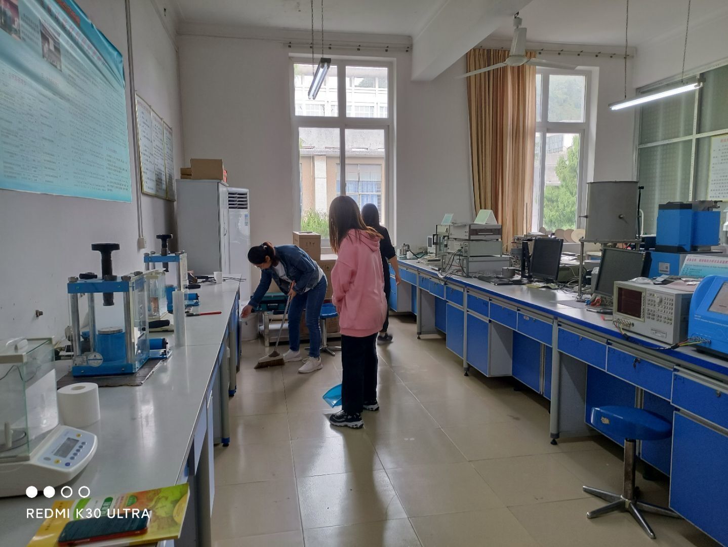 党支部根据活动参与人数和实验室数量进行分组,在实验室负责老师的指引下,支部党员清扫实验室、规整实验室桌椅、整理实验课用品、清洁实验室仪器等。整场活动中,党员同志分工合作,有序进行,在党员同志一个小时清洁美化下,整个实验室焕然一新。