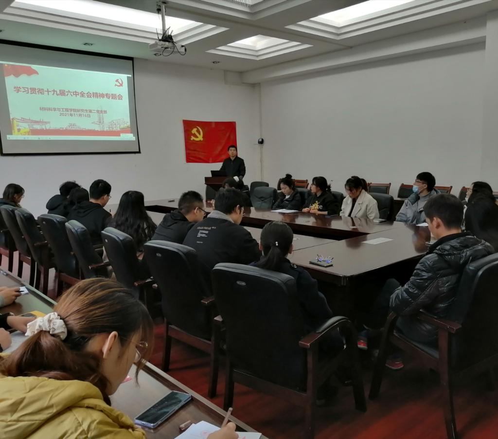 为深入学习贯彻十九届六中全会精神,了解党的百年奋斗重大成就和历史经验,更加坚定自觉地践行初心使命。11月16日下午,学院研究生第二党支部在屏风校区3212会议室组织召开学习十九届六中全会精神专题会。专题会由支部副书记李俊俊同志主持,支部全体党员参加。