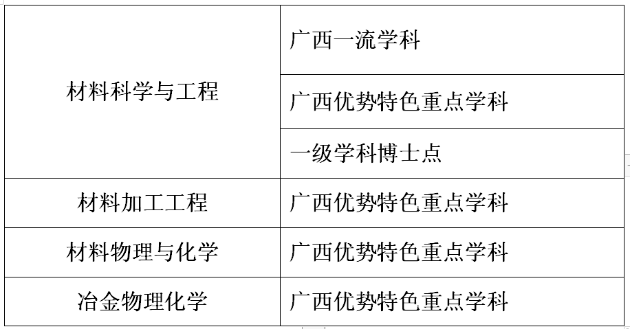 学科发展面向国家新材料发展战略、服务广西千亿元产业和新材料产业,经过多年的发展,在国内同类学科中具有较高的知名度,成为服务和支撑国家和广西经济社会发展的重要太阳成集团tyc33455和科研基地。